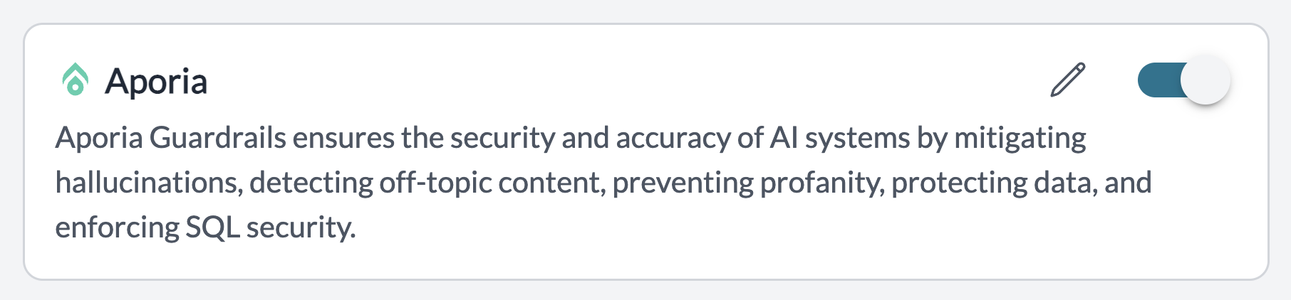 Aporia provides state-of-the-art Guardrails for any AI workload. With Aporia, you can setup powerful, multimodal AI Guardrails and just add your Project ID to Portkey to enable them for your Portkey requests. Aporia supports Guardrails for Prompt Injections, Prompt Leakage, SQL Enforcement, Data Leakage, PII Leakage, Profanity Detection, and many more! Browse Aporia’s docs for more info on each of the Guardrail: